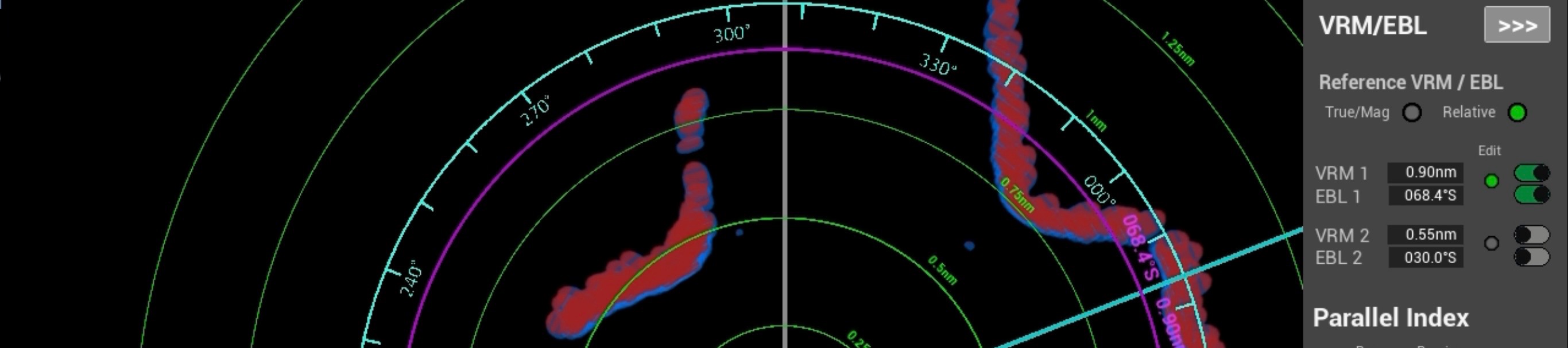To introduce the use of VRMs and EBLs in conjunction with other techniques such as depth to allow position monitoring along with other techniques to determine position as part of the process of route monitoring when on passage.