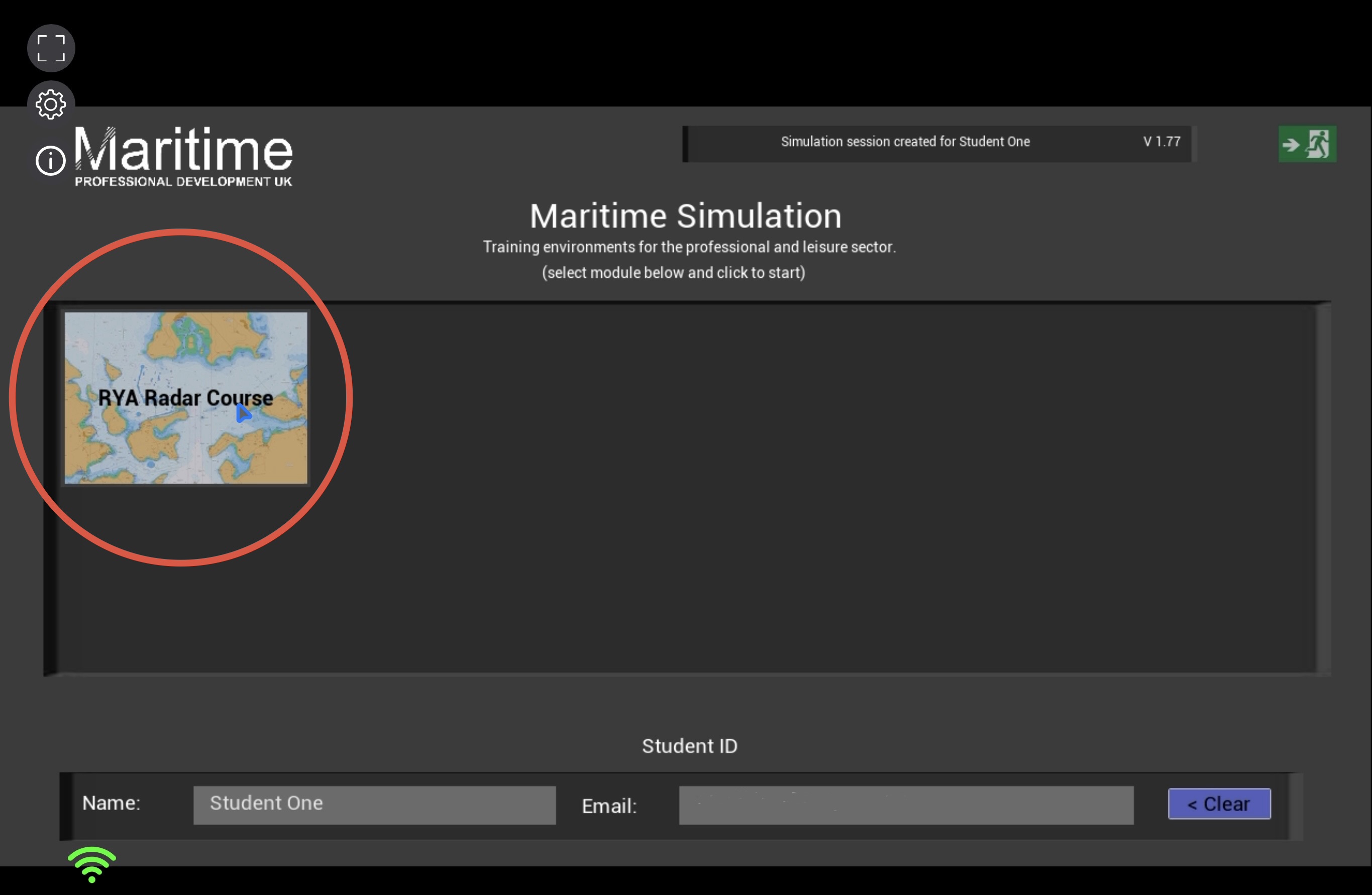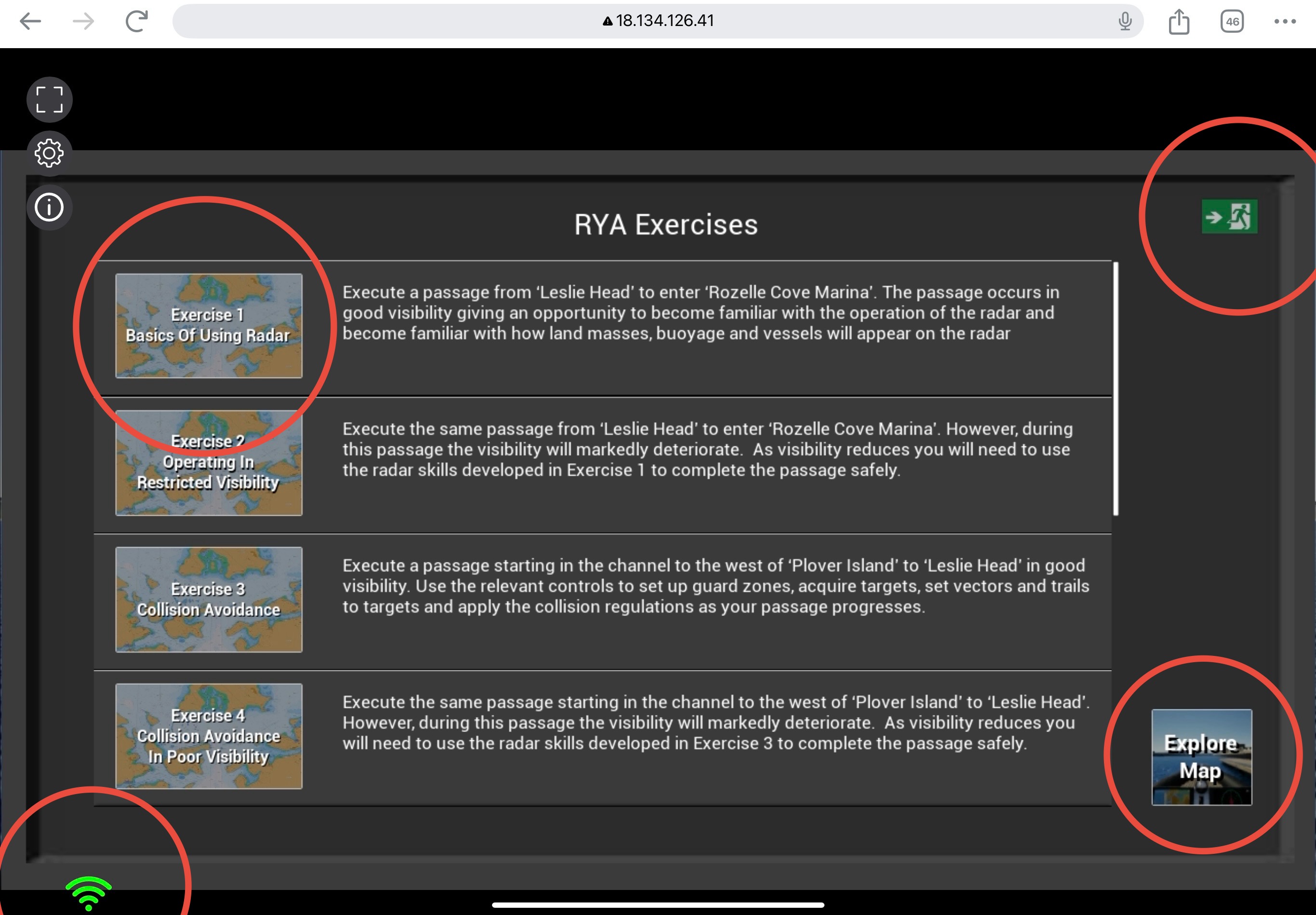 The RYA Radar Course page will then appear showing the list of exercises available to the student.