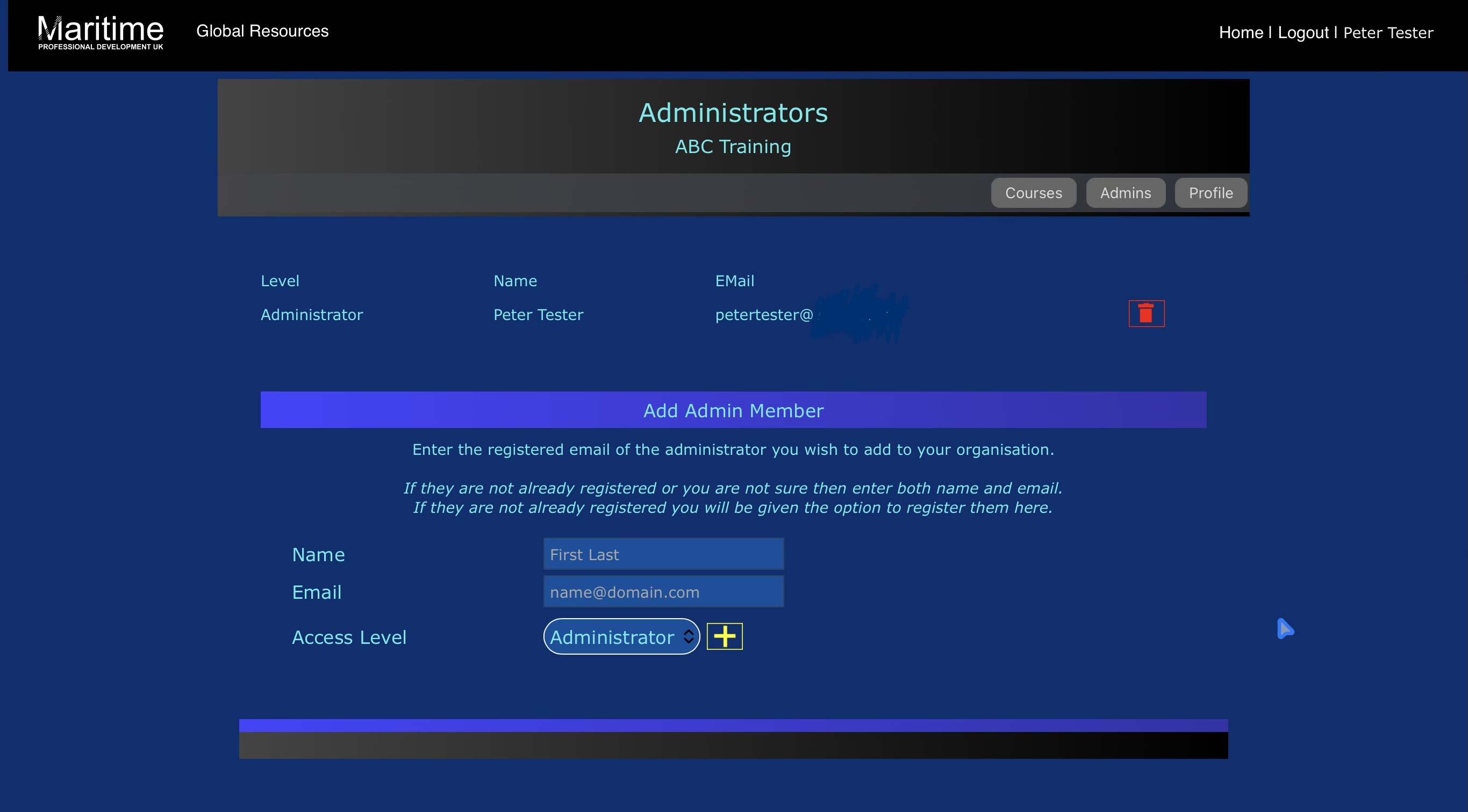 Admins - these are generally Instructor level individuals. They can view all courses, add new courses and add students and instructors to courses. Global Admins should ensure that when an Admin no longer works for a school they are removed from the Admin list else there is the risk that they inadvertently access school details and are able to use simulator hours belonging to the school.