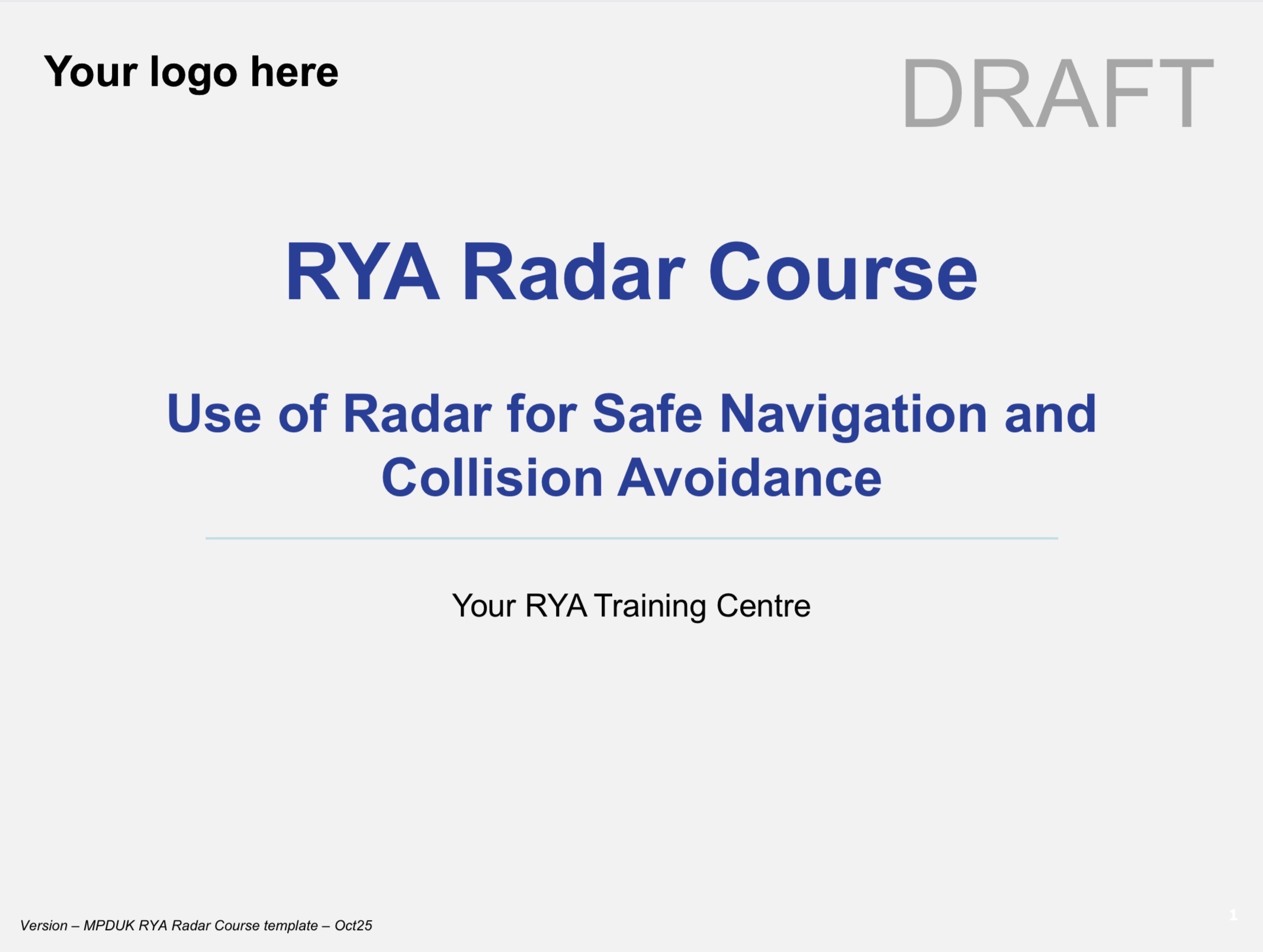 What this presentation template doesn’t include is imagery or the detail of what you need to teach as that’s for the school/their instructors to agree on and create. A really key point though is don’t overteach the theory. The course should be all about the skills and knowledge needed to actually use the radar for navigation and collision avoidance. A deep dive into theory serves students no benefit and dilutes their ability to learn the important stuff - often ‘less is more’!