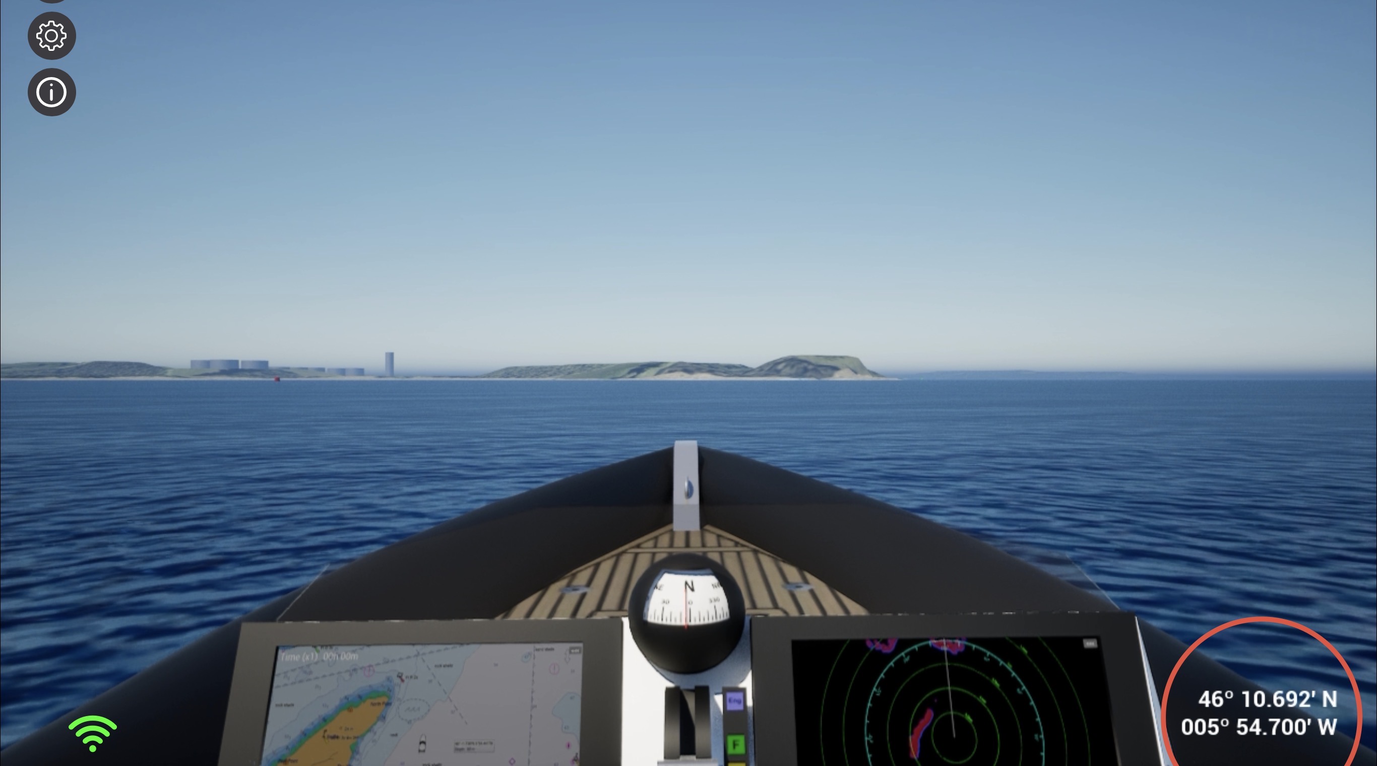 Exercise 5 - Position Monitoring stops at two points for the students to position fix and enter their latitude/longitude in order to progress the exercise. The exercise will stop in roughly the same area for all students however as the route each student takes is unique then the actual position will vary student to student. To progress the student needs to get the position correct to within approximately 200m. This can cause problems if the student is making errors as sometimes it may be better to accept what they have done as a means to facilitate the exercise moving on. As the instructor you can work with the student to ensure their position fixing methods work however if you need the latitude and longitude of the boat select ‘Shift + G’ and the lat/long will appear in the bottom right hand side of the screen.