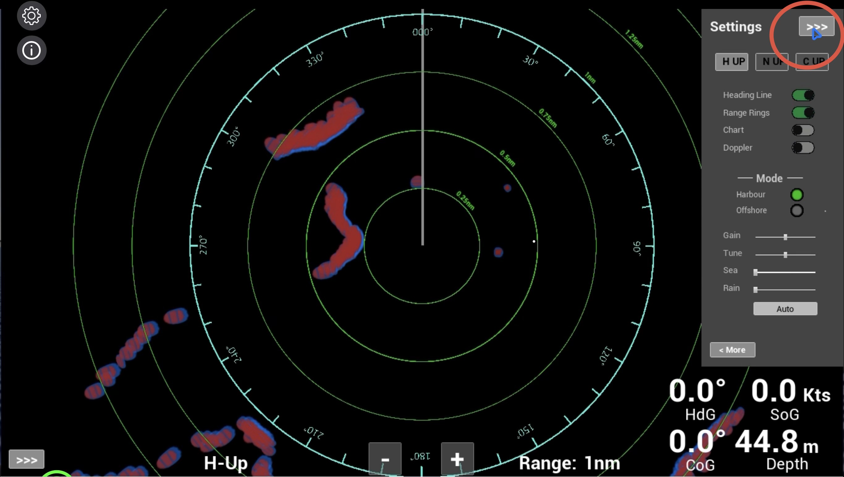 Adjust range as required to position the PI line to one side or other from the vessel’s position.